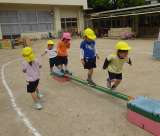 園庭では一本橋や梯子渡りに挑戦していました。「一人でいけたよ!」「ゆっくりした...