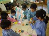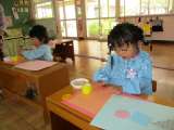 今日、入園してきて初めての製作をしました。 糊に興味津々の4歳児。 丸や三角、...