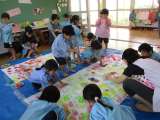 全園児で手形遊びをしました。大きい布を広げると「わ〜!」と、思わずつぶやいてい...
