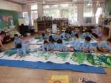 絵の具や筆の使い方を聞いてから絵をかきました。大きな画用紙にのびのびと楽しんでか...