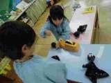 5歳児はオタマジャクシをつくりました。しばらく見ていると子どもたちは作ったオタマ...