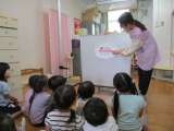 年少児も、歯と口の健康について話をしました。 食べた後に歯を磨かないとむしばい菌...
