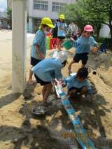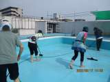 保育終了後、来週から始まるプール遊びに向けて教職員でプール清掃をしました。