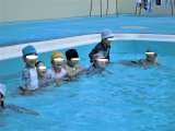 今日は全園児でプールに入りました。水かけっこをしたり、いろいろな動物に変身したり...