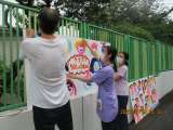 今年、榎本幼稚園は創立50周年を迎えます。園児がかいたお祝いの記念パネルを教職員...