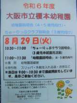 明日、園庭開放の後「ちゅーりっぷクラブ説明会」と「幼稚園説明会」を下記の時間帯で...