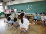 ちゅーりっぷクラブの子どもたちが発育測定を受けました。年長児が身支度の仕方や測定...