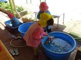 今日のえのもとクラブの様子です。子どもたちは日陰で水遊びをしましたよ。花や野菜...