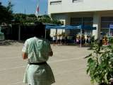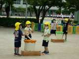 園庭から「トン、トン」と5歳児の叩く「たる太鼓」の音が聞こえてきました。振り返る...