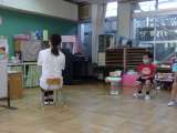 年少児は、姿勢について話をしました。 始めに、背中の骨が曲がっていると体のバラン...