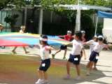 5歳児のパラバルーンがとても上手になってきました。先生たちの力を借りずに子どもた...