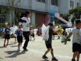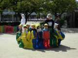 5歳児は「スペシャルわんぱくだん」に変身して挑戦です。リレーも真剣さが増してきま...