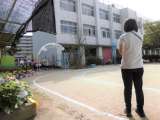 給食時間に隣接している榎本小学校の校庭をお借りして、5歳児がパラバルーンとリレー...