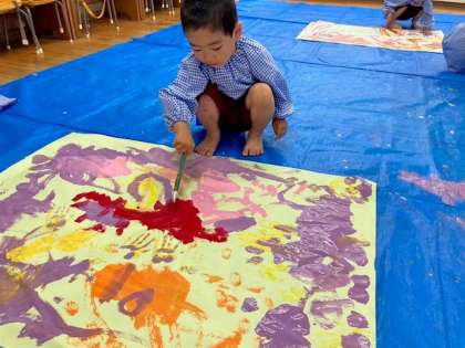 ひよこ組が絵の具遊びをしました 公開日 2024/05/30 更新日 2024/05/30 子どもの姿 3歳児ひよこ組の子どもたちが初めて絵の具遊びをしました。 朝から保育室においてある絵の具を見て、「なにこれ?」「はやくやりたい!」と担任に話をしに来る子どもたち。ワクワクする気持ちがどんどん膨らんでいる様子でした。 いざ始めると子どもたちは、もくもくと集中して紙の上で筆をすべらせていました。ス〜と筆がすべっていく心地よさや色のきれいさを、一人一人がじっくりと観察していたのでしょうか。 いいね(0)