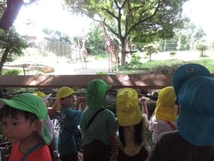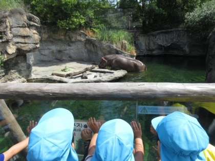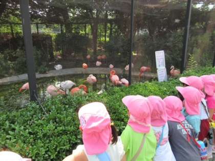 子どもたちが楽しみにしていた、天王寺動物園へ園外保育に出かけました。朝一番は他のお客さんも少なく、貸し切り状態でゆったりと動物たちを見ることができました。フラミンゴを見て「一本足でずーっと立ってる!僕もできる!」とみんなでフラミンゴポーズをしてみたり、大きなブラシで飼育員さんがゴシゴシしているカバの歯磨きも見たりすることができました。