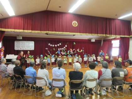 最後はみんなで「かたつむり」と「どんな色がすき」の2つの歌のプレゼントをしました。ちょっとドキドキしたけど、きいてもらえてうれしかったね。