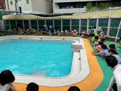 前週まで雨予報だったのが、なんと曇りに!予定通りプール開きを実施することができました。みんなでプールの約束事を確認し、「守ろう!」という気持ちをもって活動に参加しました。
