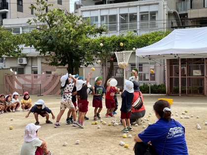 運動会ごっこ(異年齢) 公開日 2024/10/03 更新日 2024/10/03 子どもの姿 玉入れのチーム名を自分達で決めてから、「まとめて3個持って投げるぞ!」「絶対勝つ!」「いけいけー!」と、口々に言いながら遊ぶ子どもたち。より一層やる気が高まっています!そんな真剣な子どもたちの姿を見ると、ついつい周りの先生たちは応援に熱が入ります。おうちの方々の応援も加わるともっともっと盛り上がりそうです! いいね(0)