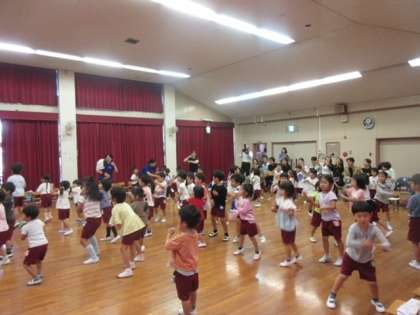 10月の誕生会を行いました!今月は8人のお友達の「1つ大きくなったお祝い」をしました。ドキドキしながらもなんとか自分の言葉で自己紹介をしようとする誕生児の姿はとっても輝いて見えました。今月はそら組が「どんぐりエレベーター」のペンダントをつくって渡したり、園長先生とホールの中でかくれんぼをして遊んだり、誕生児とおうちの方とはヘリコプターに乗って体を動かして遊びました。最後には、運動会で5歳児が踊った「ジャングルぐるぐる」を全園児で踊り、たくさん体を動かした素敵な会になりました!