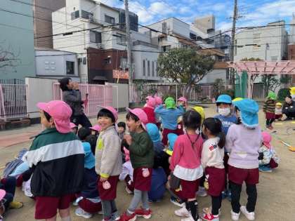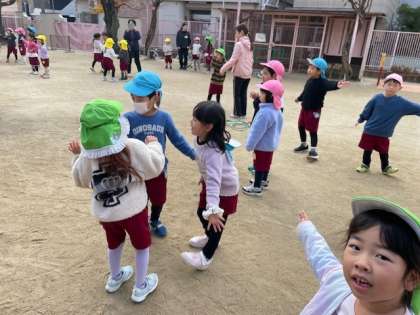 18日のお楽しみ会に行くよ、という内容でした。子どもたちは目を輝かせ、「え?!来てくれるん?!」と嬉しそうな表情。その後は全園児で、サンタさんも見ているかな?とサンタクロースが出てくるダンスをして遊びました。