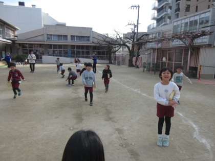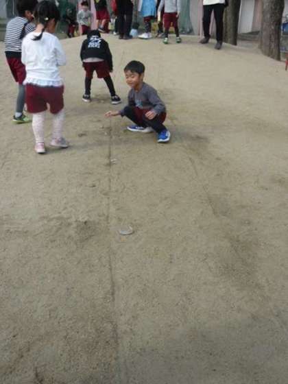 サンタさんが帰ったあと・・・。 公開日 2024/12/19 更新日 2024/12/19 子どもの姿 サンタさんとさよならした後、保育室に帰ろうとして園庭横を通ると「ソリの跡がある!」と子どもたち。砂山に向けてスピードを上げて走っていき、そのまま空へ飛びたったような跡。またソリの跡の近くにはたくさんの氷が!「やっぱりトナカイと一緒に来てたんだ!」「サンタさーん!ありがとう!!」と空に向かって思いを伝えていました! いいね(0)