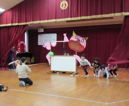 ネコたちがサカナの周りをくるくるとまわっていたり、人を食べてしまう鬼のお尻から勢いよく飛び出てきていたり、パーティーのダンスを踊っていたり…なんだか楽しそうな子どもたち。何して遊んでいるのかな?