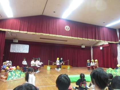 発表会の予行をしました(2) 公開日 2025/01/31 更新日 2025/01/31 子どもの姿 他のクラスの友達が目の前でお客さんになり自分たちの劇遊びをみてもらう経験を初めてした子どもたち。とってもドキドキしたようで緊張の表情でした。しかし、劇遊びが進むにつれてどんどんいつもの元気いっぱいの様子になっていきました。 いいね(0)