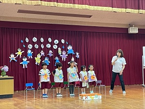 6月生まれのお友達を全園児でお祝いしました。「大きくなったら何になりたいか」など、一人ひとりがみんなの前で一生懸命に発表する姿から、また一段と成長した様子が感じられました。