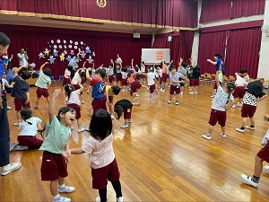 今月は、保護者の方と「あまだれぽったん」を歌いました。さらに「さくらんぼのマンボ」や「かえるの体操」も、保護者の方や全園児と元気いっぱい踊り、楽しいひとときを過ごしました。