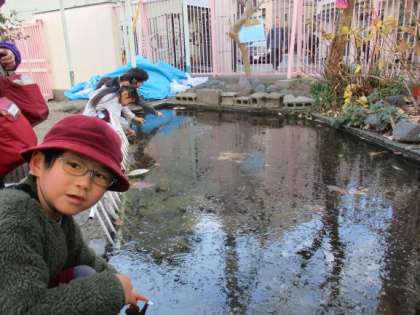 自然に作り出された冬ならではの光景に、子どもたちは目をキラキラさせて、見たり触ったり楽しみました☆
