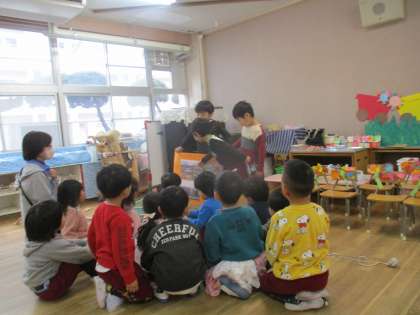 おうちの方が、4日間かけて絵本室整理をしてくださいました。同じ階で毎日その様子を見ていた5歳児の子どもたちは、興味津々。完成した絵本室を見て「新しい本が増えてる!」「次はこの本借りたいな…」と目を輝かせていました。そして「小さい組さんにもお知らせしないと」と、伝えたいことを皆で話し合いました。絵本室がきれいになったこと、返す場所やマークが変わったこと、新しい絵本が増えたこと…そして、みんなが気持ちよく絵本を借りられるように、大切に読んで元の場所に返せたらいいね、と小さい組のお部屋を回ってお知らせしました。うれしいニュースに、3・4歳児も聞き入っていました。週に1回の絵本貸し出しがまた楽しみになりましたね。保護者の皆さんありがとうございました。