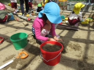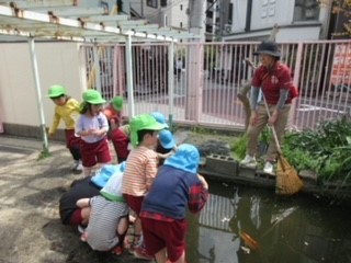 砂場で料理をする子ども、サーキットで体をたくさん動かす子ども、なかよし池でヤゴ探しをする子ども…それぞれ、自分の好きな遊びを見つけて存分に遊んでいました。