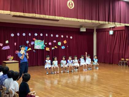 誕生児は、もり組さんが心をこめて作ったアイスクリームの王冠をかぶり、はりきって自己紹介をしていました。