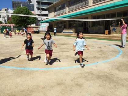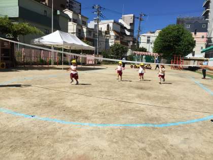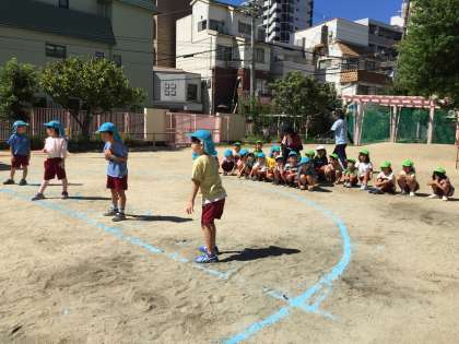 毎日暑いですが、子どもたちは元気いっぱい!朝、少しでも涼しい時間に体操やかけっこをしました。「次は僕の番だ」「一生懸命走るよ」と真剣な顔でスタートし、ゴールテープを笑顔でくぐっていました。運動会に向けて、気持ちが高まるといいなと思います。