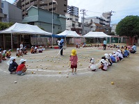子どもたちがチーム名を決めたダンシング玉入れでは、5歳児が「お休みの友達がいて人数が全然違うから負けた」と悔しがっていました。そこで5歳児が考えついたのは「はな組さん(4歳児)からお助けしてもらおう」と。毎日の遊びの中で困ったことがあれば考え、新たな方法を生みだすという繰り返しをして遊びを進めています。明日の運動会は、そんな遊びや生活の延長にあります。