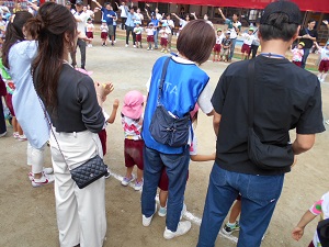 プログラムの最後は、親子DEだんす☆大屋根リング 保護者の方にも参加していただき、大阪関西万博のテーマソング「この地球の続きを」にのってダンスをしました。最後は、大きな大屋根リングになり、「TOKIWAEXPO 2025」を笑顔で終えました。