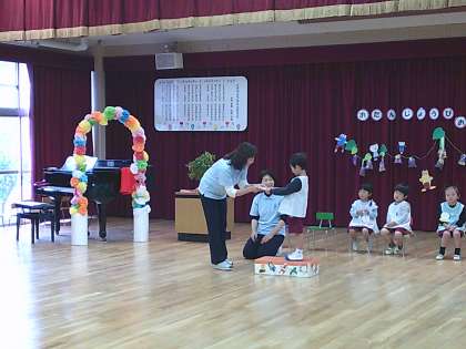 園長先生から誕生ブックをもらうのもドキドキするけどうれしいです。みんなでした「ちょっとだけ体操」ももりあがりました。