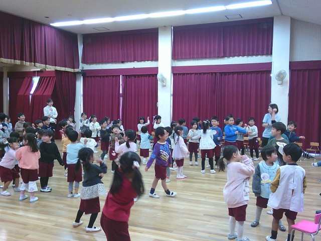 その後は、みんなでたこの歌を歌ったり、保護者の方と誕生児で「サンタッタ」を踊ったり、全園児で「おでんでんでん」を踊ったりして楽しみました☆