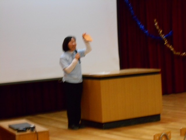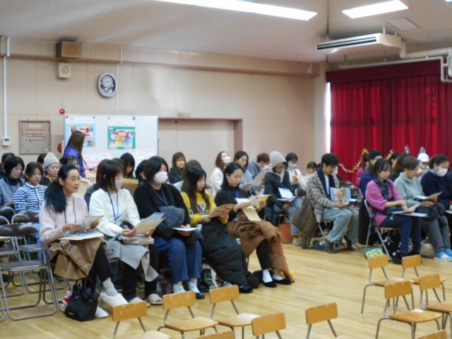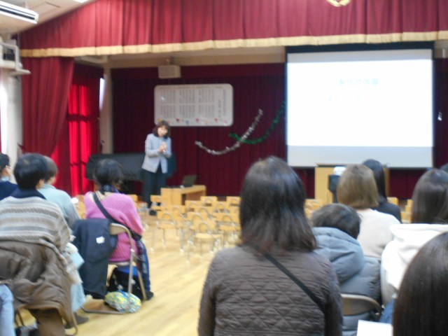 保護者会では、区役所の安全パトロールの方から、安全な自転車の乗り方の話。園長先生から、2学期の幼稚園生活で育った子どもの姿や小学校や地域とのつながりの話。養護教諭から、感染症予防と近視予防のための正しい電子機器の使い方の話をしました。
