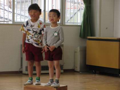 誕生会では、まつ組が司会をしました。自分たちで司会の言葉も考えましたよ。少し緊張もしましたが、「大きな声で司会できた!」と、自信につながりました。さすが、まつ組さんですね。また元気に司会をしてね。