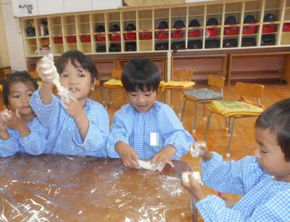 柔らかい感触を楽しんだり、においをかいでみたり、伸ばしてみたり…