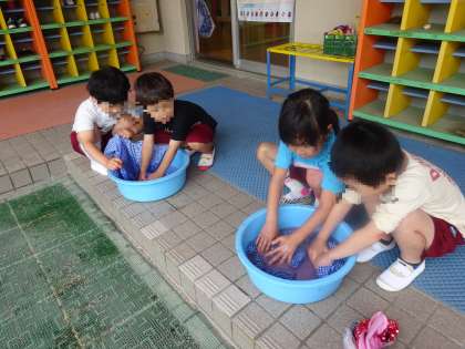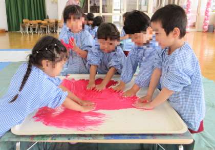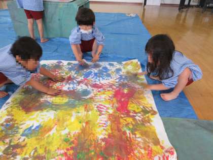 絵の具で遊んだよ 公開日 2024/05/31 更新日 2024/05/31 お知らせ まつ組、ばら組でフィンガーペインティングをして遊びました。絵の具の感触に「気持ちいいね」「ムニュムニュしてる」と、喜んでいましたよ。 まつ組は、絵の具のついたアトリエ着を『洗濯ごっこ』で、自分で洗いました。水の色が変わる様子に「きれいになっているね」と、つぶやいていました。 また、みんなで絵の具で遊びましょうね。 いいね(0)