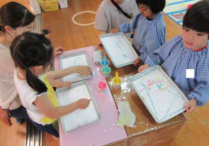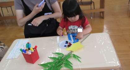好きな遊びをした後はキラキラの流れ星をつくったり、「こちょこちょでんしゃ」の仲良し遊びをしました。色々な遊びをして楽しかったですね。