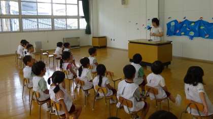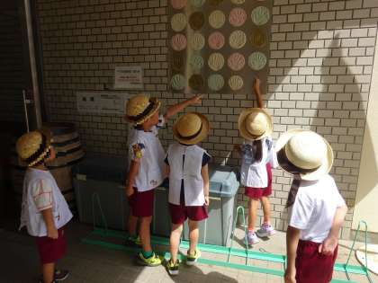 いよいよ2学期が始まりました。みんな元気に登園してくれ、嬉しい気持ちになりましたよ。100周年記念のモニュメントも出来上がったので見に行くと「これだ!」と、大喜びでした。2学期もたくさん遊びましょうね!