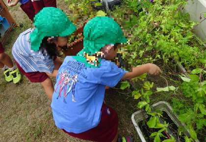 まつ組が、「風船カズラの袋が茶色になってる!」と発見しました。開けてみると…「種が入ってる!」「もっと探してみよう」と、種取を楽しんでいましたよ。8月に元気に咲いていたヒマワリもよく見ると、真ん中に種があるのを見つけ「種だ!!」と、大喜びです。いろいろな種を見つけましたね。