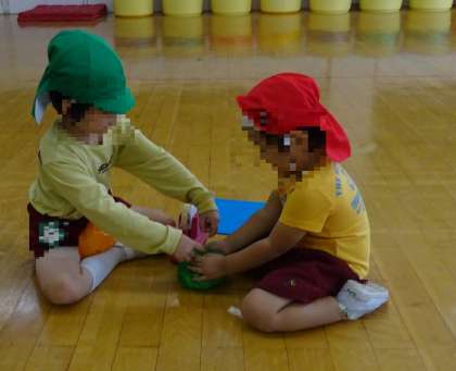 創立100周年のお祝いケーキに飾る果物を、まつ組・ばら組みんなでつくりました。「どんな果物にしようかな〜」「バナナにしよう!」「イチゴにする」と、目を輝かせながらつくっていました。つくっている中で、ばら組が「ここにテープ貼りたいけど難しいな」と困っていると、まつ組が優しく手伝ってくれていましたよ。素敵な果物がたくさんできましたね。また、みんなでケーキに飾ろうね。