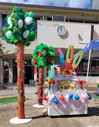 PTAさん手づくりの『幼稚園さんのケーキ』『果物の木』です。