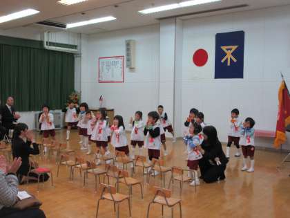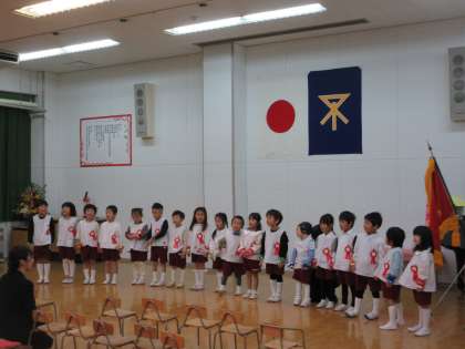 園児の演技では、おめでとうの歌「ハッピー・フレンズ」をうたい(2枚目)