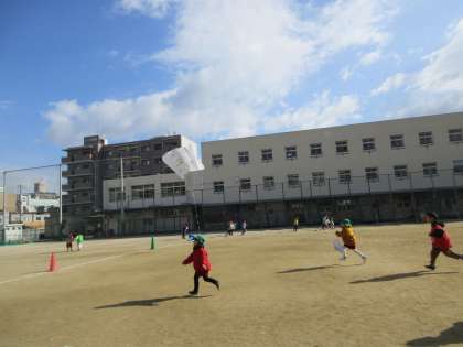 今日は、1年生のお兄さんやお姉さんと一緒にたこあげをしました。