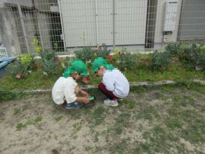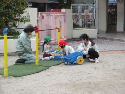 お家の方と離れて「ちょっと寂しい」気持ちのお友達もいますが、安心できるように、教職員みんなで見守り、声をかけています。